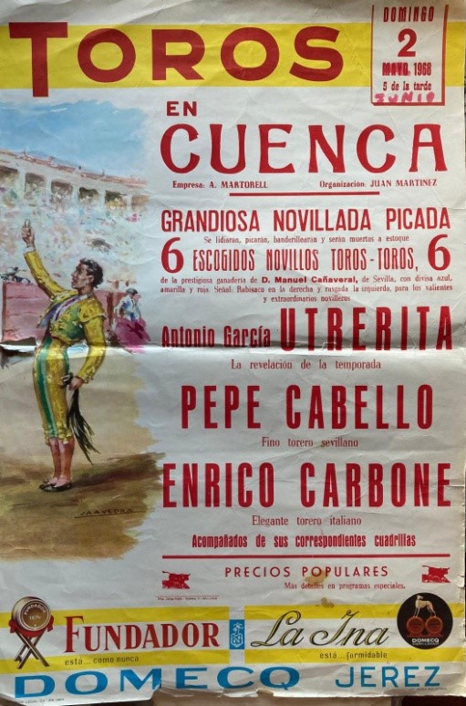 A Cuenca, come novillero con picador, toreò con Antonio Garcia Utrerita e Pepe Cabello. Il Cossio gli dedica uno spazio erronemante come novillero sin picador, mentre al volume 5 (pag 718) lo stesso recita: “Cabello matador de novillos que comenzò a intervenir en corridas picadas durante la temporada de 1966 (…) En la de 1968 torea cinco festejos mayores (…) y el 2 de junio resultò cogido por una res de Manuel Canaveral, en presencia de Utrerita y Enrico Carbone”.