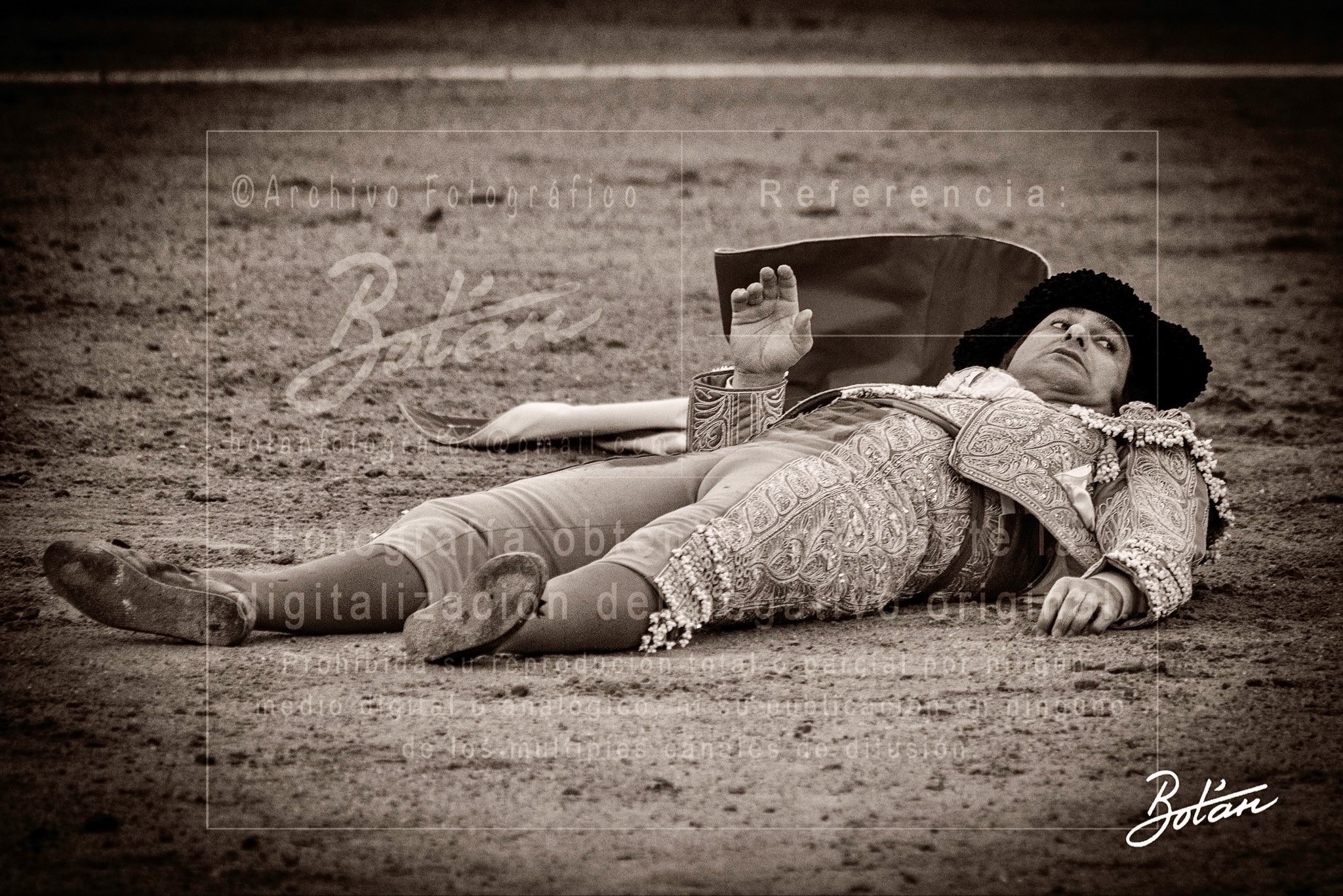 Erano le 19.30 quando uscì il toro Tripulante, della ganaderia salmantina di Carcigrande (una bellezza della natura). Morante, che non aveva potuto fare nulla nel suo primo mastodontico toro, lo riceve dipingendo veroniche di massima perfezione e vicinanza, nonostante il toro abbia non poco temperamento. Passa pertanto a quitar por chiquelinas proprio nel centro del ruedo (lì dove si dice che “los toros pesan màs”) con una rischiosità estrema e con dei “remates” inverosimili al punto che alla terza chiquelina viene preso da Tripulante, innalzato verso il cielo e sbattuto violentemente per terra. Per una decina di secondi rimane steso, immobile. Il pubblico senza fiato. Poi muove un occhio in cerca del toro, un altro in cerca di aiuti. Che lo portano nel callejón dove arriva come pugile stordito.